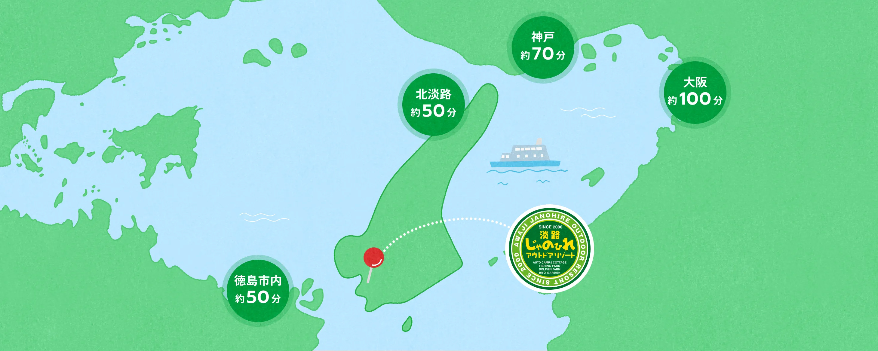 淡路島の北側、徳島市内からも車で約50分。