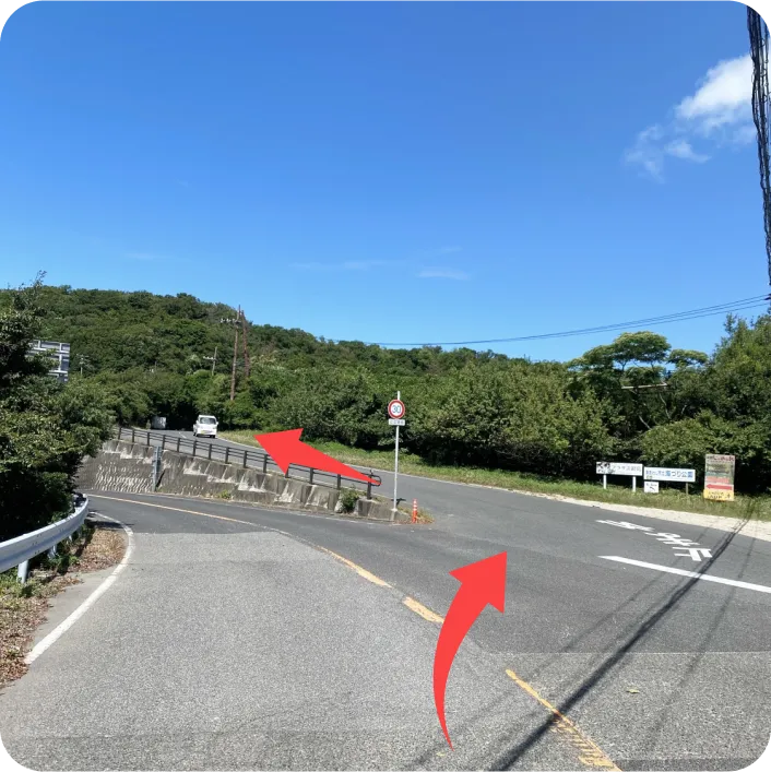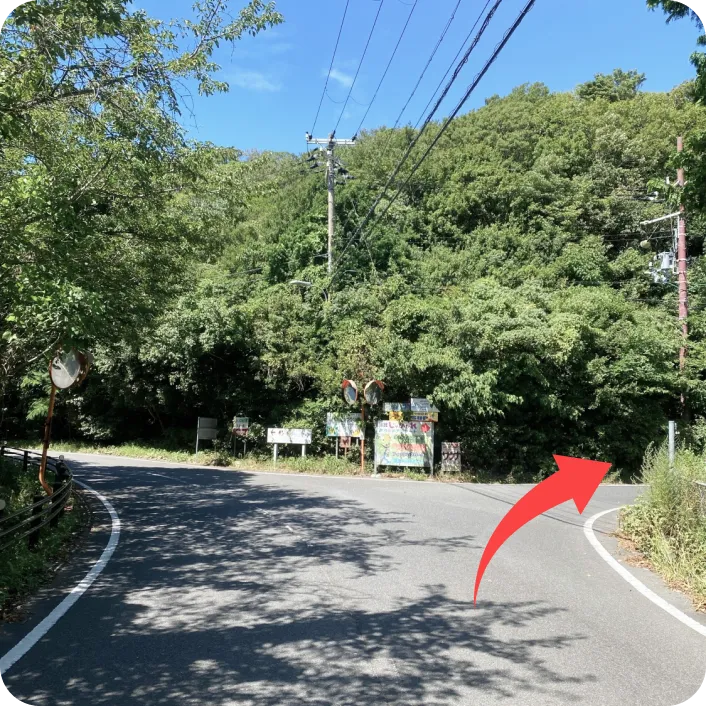 県道25号から、看板のあるところを右斜め方向に進みます。