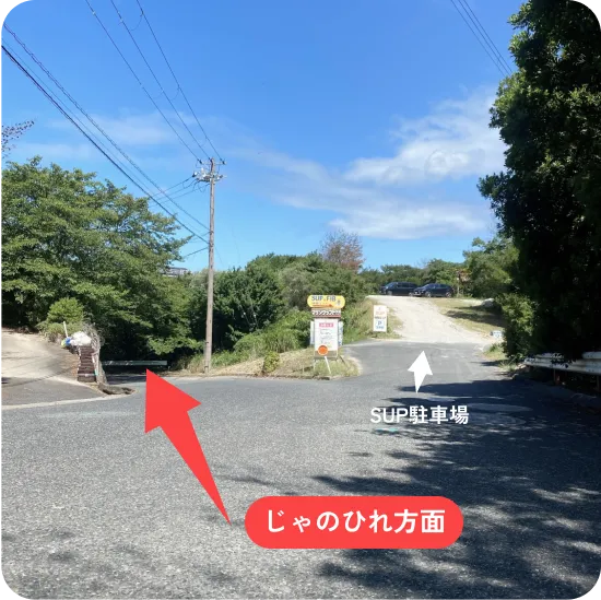SUPの看板が見えたら、右側にSUP駐車場があります。