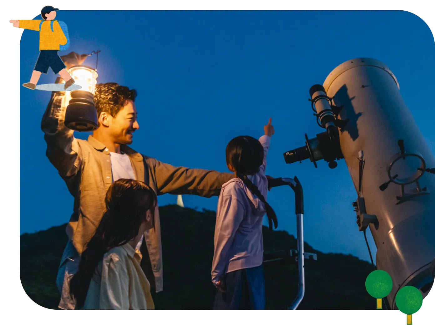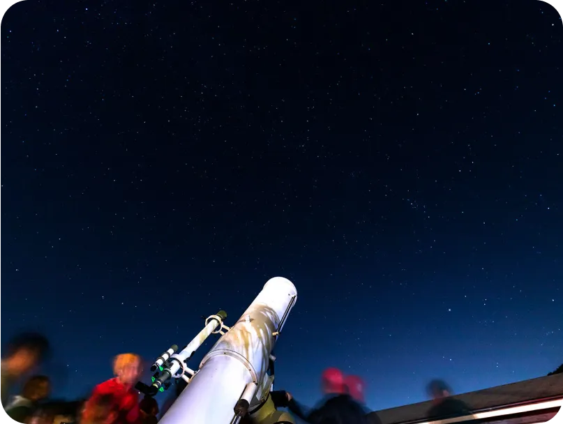 月や惑星、星座、天の川、流星群、人工衛星、スターリンク衛星、宇宙ステーション…時期によってさまざまな天体や衛星を観測できます。望遠鏡を使えば、月のクレーターや土星の環までくっきり。肉眼では気づけない世界が、目の前に現れる感動は格別です。