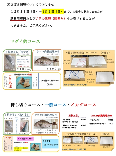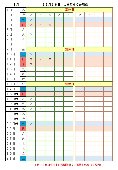 釣堀 貸切 予約空き情報表 12月・1月・2月