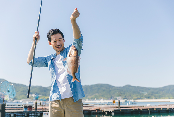 渡船で海上に設置されたイカダから天然の魚釣りに挑戦する筏釣りに挑戦してみよう。