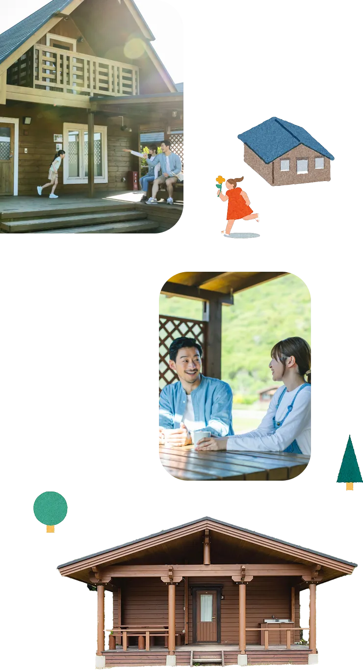 お風呂の有無やリビングスペースの広さなど、設備はタイプによってさまざま。ご希望の過ごし方にぴったりのコテージをお選びください。